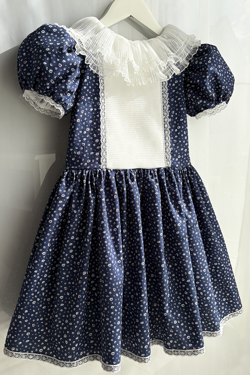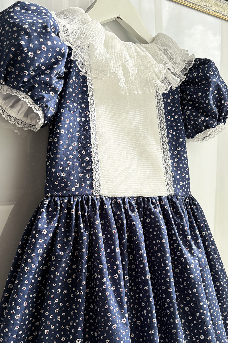 Rochie din bumbac* imprimat cu flori și detalii din tulle plisat si dantelă fină albă, perfectă pentru momente speciale, evenimente sau ședințe foto.